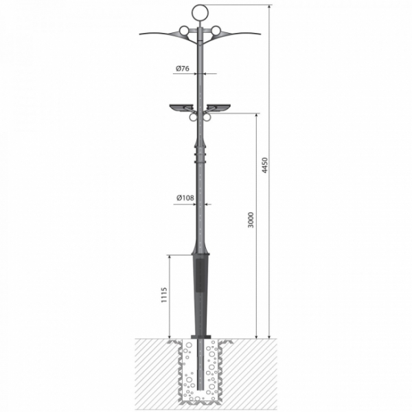 Декоративная опора "Колизей" - 1 - 4,4 предназначена для освещения парков, скверов, набережных, аллей, коттеджных посёлков, прилегающих территорий.